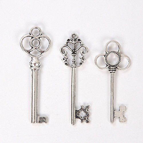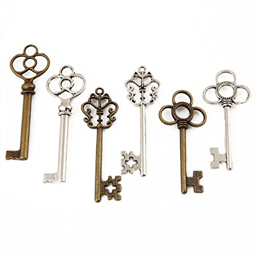 Bingcute 6 Type Of 30Pcs Antique Bronze Vintage Skeleton Keys And Antique Silver Skeleton Keys -Vintage Style Key Charms