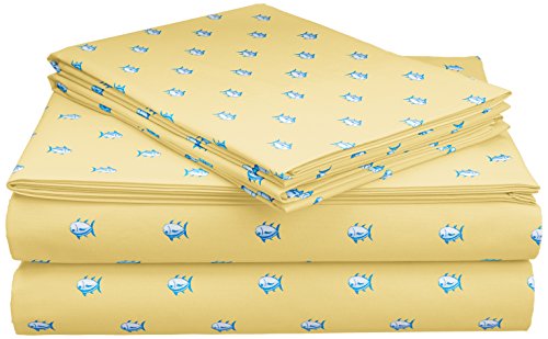 Southern Tide Printed Cotton Sheet, Queen, Skipjack Moonlight Yellow