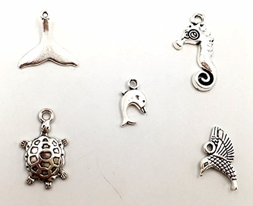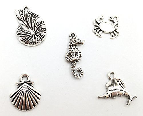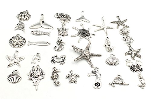 30pcs Assorted Marine Animals Sea-fish Ocean Lives Creatures Charms Pendants Connectors for DIY Jewelry Making Accessories By Alimitopia(Antique Silver Tone)