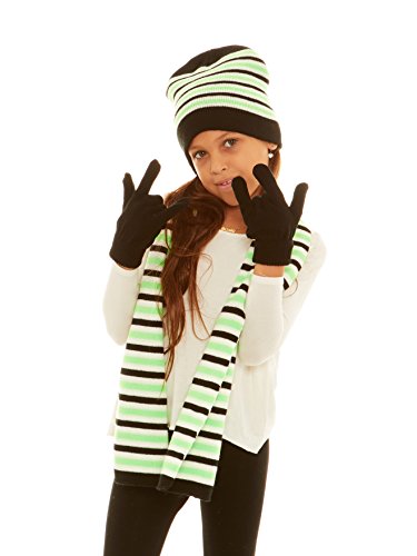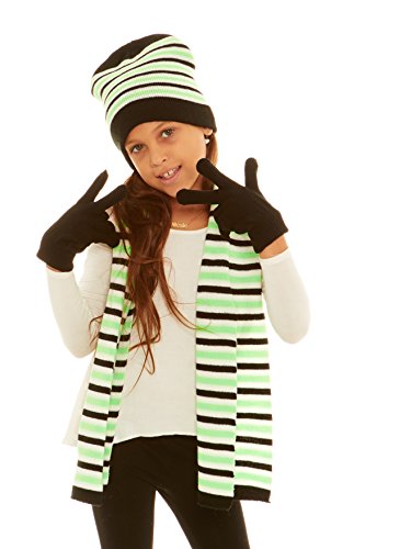 S.W.A.K Girls Knit Hat, Scarf And Gloves Set