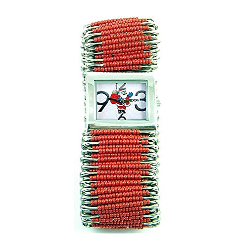 PlanetZia Red Opaque Santa Safety Pin Stretch Watch HM-ROSSP