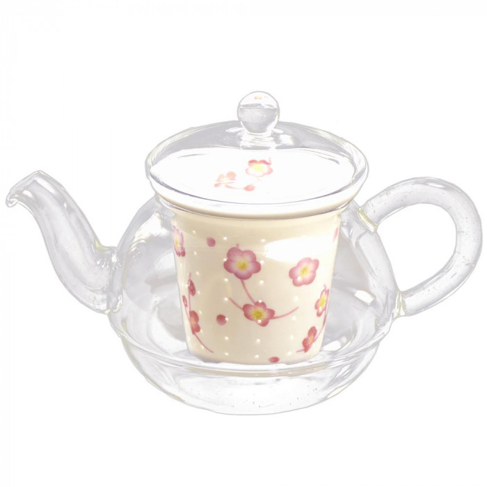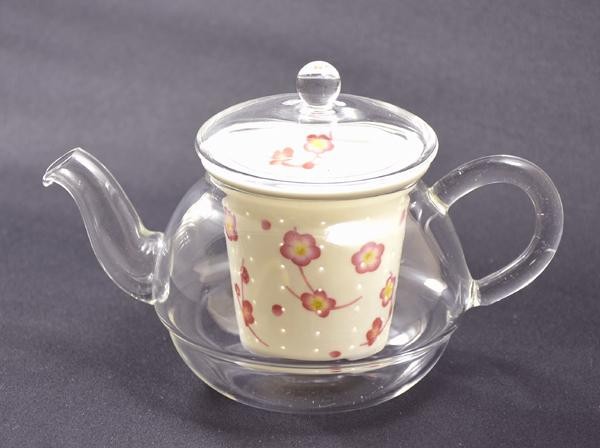 ガラスのティーポットに有田焼の茶こしがおしゃれ☆日本茶・紅茶・中国茶・ハーブティーなどいろんなお茶にご使用下さい♪ 製造国:ポット・蓋:中国、茶こし:日本 素材・材質:ポット・蓋:耐熱ガラス茶こし:磁器(有田焼) 商品サイズ:(約)径9.5×幅15×高10.5cm 仕様:容量:約300cc耐熱温度差:120度電子レンジ使用可食洗機使用可 セット内容:蓋付ポット×1、茶こし×1 ※サプライヤー直送品 ご注文後3~4営業日後の出荷となります【商品名】有田焼 セランドグラス おしゃれポット 誕生花 2月 梅 300cc KA-200