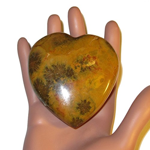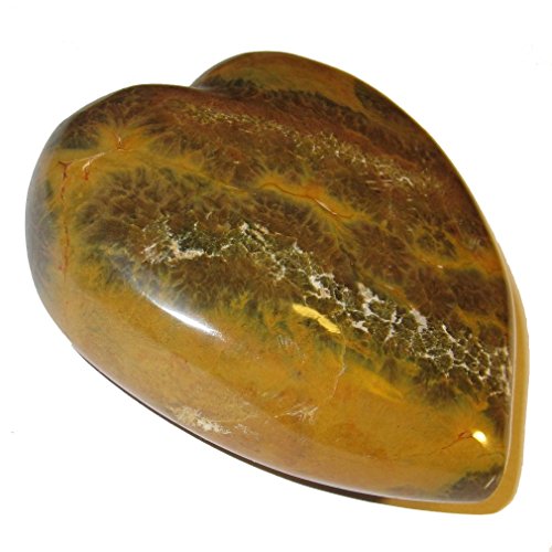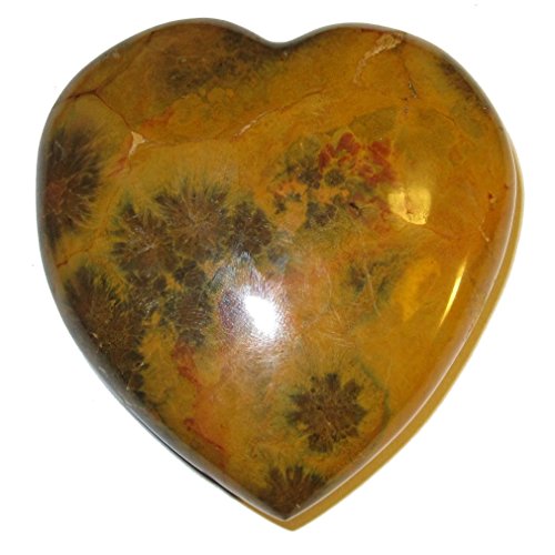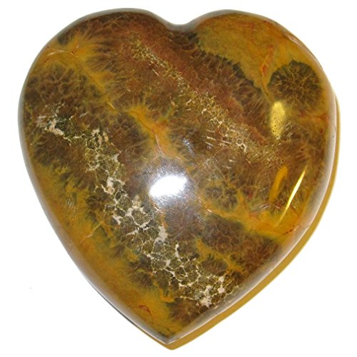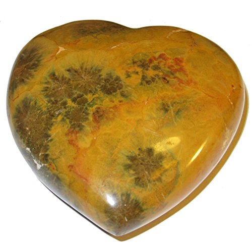Your heart is made from gorgeous ocean jasper of Madagascar. The ocean jasper boasts mustard tones with sea flower brown fossil formations and rocky grooves. Receive the exact one featured when you order from Satin Crystals.
