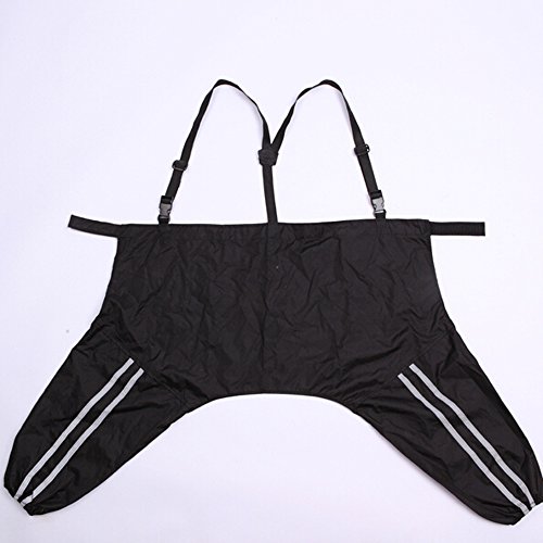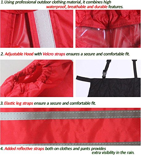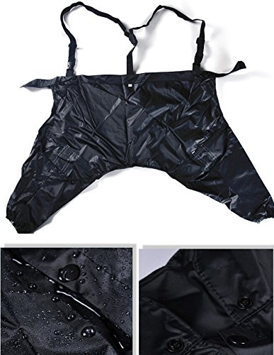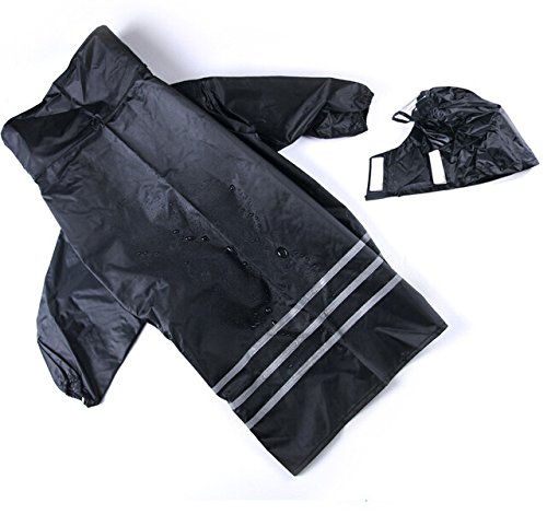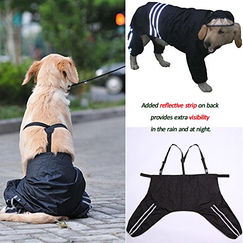 - Feature : Using professional outdoor clothing material, it combines high waterproof, high breathable and high durable characteristics. This raincoat can be divided into 3 pieces, A Hood, A Jacket and a pair of Pants. Adjustable straps on the pants enhances its stability and also shows its special character. / Sizes fit different Small, Medium and large dogs (When ordering the Dog Raincoat, please specify color as well as size). Size S: Dog Neck 18.5"-19.5", Chest 27"-28", Back length 21.5"-23"; Size M: Dog Neck 20.5"-21.5", Chest 31"-32", Back length 23.5"-25"; Size L: Dog Neck 22"-24.5", Chest 35"-36", Back length 25.5"-27"; Size XL: Dog Neck 25"-26, Chest 39"-40", Back length 27.5"-29"; Size XXL: Dog Neck 27"-28", Chest 43"-44, Back length 29.5"-31.5". / Elastic leg straps ensure a secure and comfortable fit. Added reflective straps both on jacket and pants provide extra visibility in the rain. / Package included: 1 x Jacket, 1 x Pants, and 1 x Hood. / A practical and very functional raincoat provides a water and windproof yet breathable material to keep your dog dry.