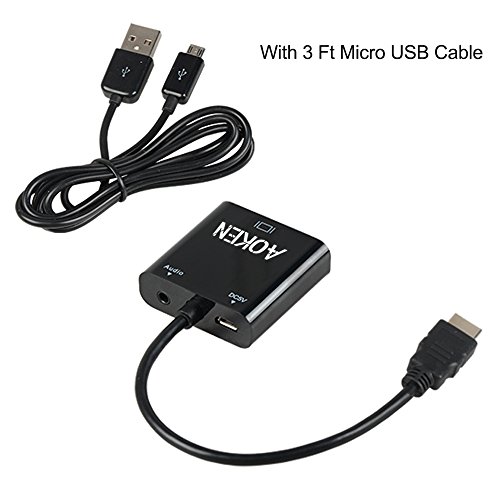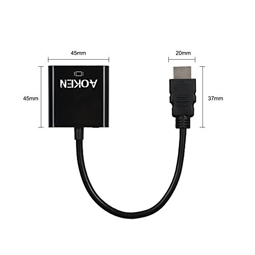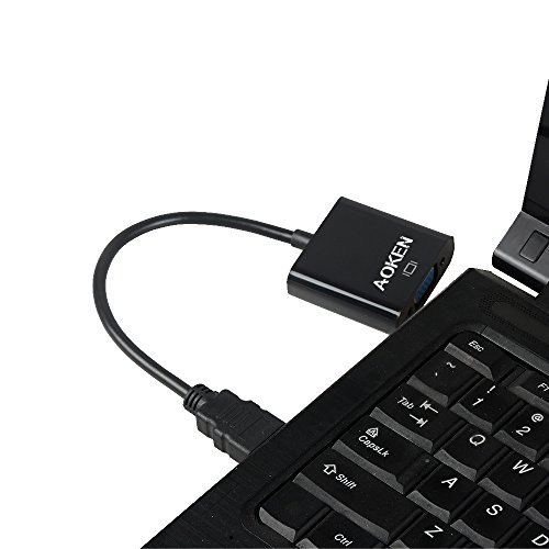 Connect an HDMI-equipped Laptop, Ultrabook, or Desktop Computer to your VGA Display, or Projector The Aoken HDMI-to-VGA Adapter Cable enables you to connect an HDMI output device, such as a laptop video output or digital media extender to a VGA display device (monitor, projector) by converting the HDMI video signal from the output device into a VGA output and separate 2-channel analog audio. Ideal for low powered video cards 1.Optional External USB power(When use with Samsung ChromeBook Macbook Pro with Retina Display, please plug in the included Micro USB charging cable) 2.Works with low powered HDMI video cards that do not output enough power for a stand-alone adapter Designed for travel - Lightweight and portable Small foot print makes this adapter ideal for connecting your tablet or smartphone to VGA displays while on the road or in boardrooms using VGA projectors Plug-and-Play Installation 1.no installation of any Software or drivers 2.Connect to the HDMI output on your device 3.Connect your Display to Aoken HDMI TO VGA using a VGA cable 4.If external power is required, connect the included USB power cable from the device to a USB power source Supported Resolutions 480i/480p/576i/576p/800x600/720i/720p/1280x1024/1600x1200/1080i/1080p