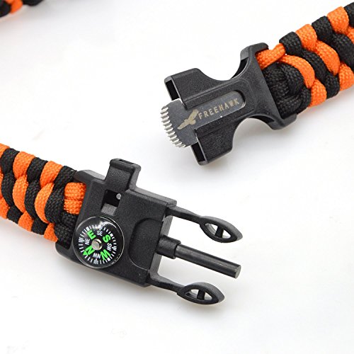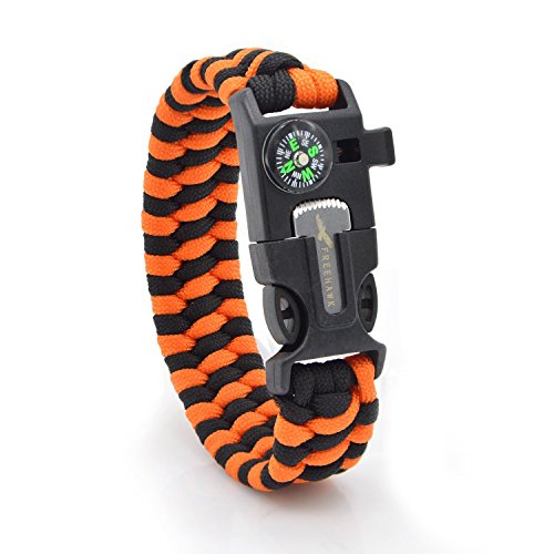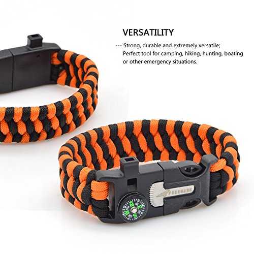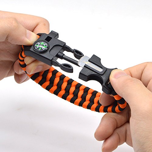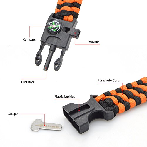Multifunctional Paracord Bracelet: Made from high quality Heavy Duty Military spec 7 Strand 550Lb Paracord Equipped with Plastic Buckle,Fire Starter,Compass and Whistle.