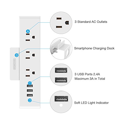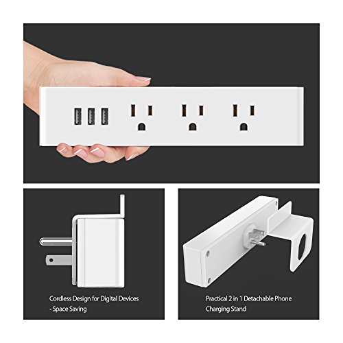 ✔ Ideal single outlet solution (3 outlets + 3 USB = 6) for your lamps, bluetooth headsets, LED reading light, fitness tracker etc