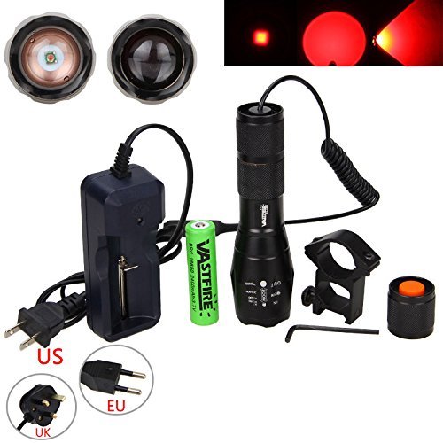 Red Predator Coyote Coon Varmints Light VASTFIRE Zoomable 200 Yards Spotlight Hunting Flashlight Ideal Scan Flashlights with Remote Pressure Switch Picatinny Mount to AR Rifle