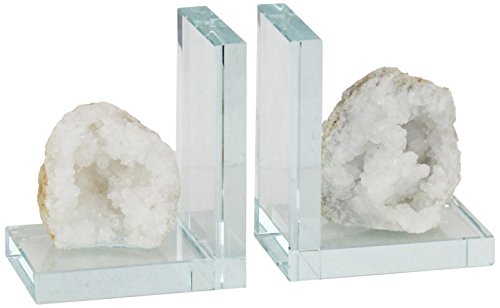 Sagebrook Home S/2 Glass & Geode Bookends S/2, 9.5" x 3.25" x 5.5", White