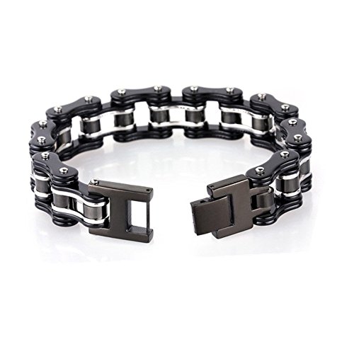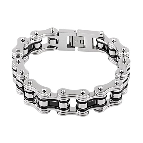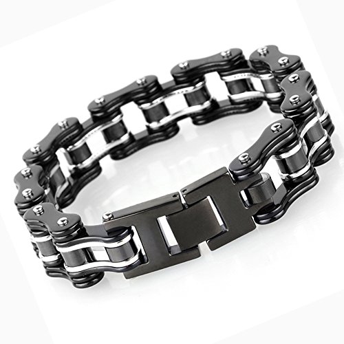 -. Title : LEADCIN Stainless Steel Mens Bracelet Bike Chain Wide Motorcycle Heavy Bangle Man Jewelry