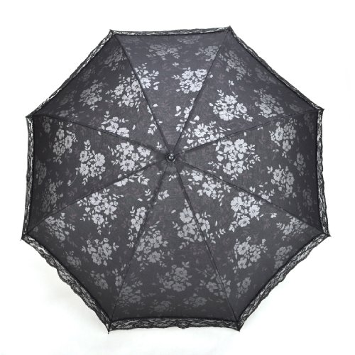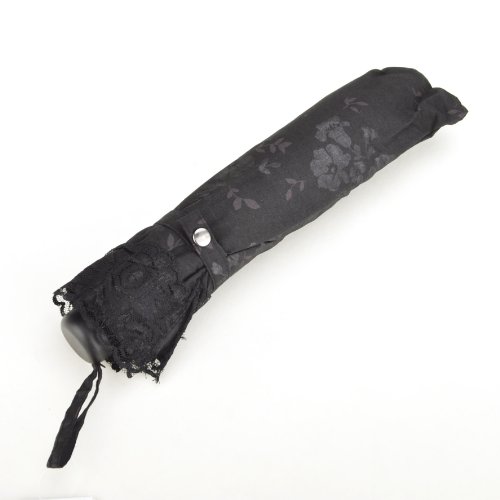 Binding : Apparel Product Description Black Umbrella Parasol With Rose Lace Trim, Anti-UV Sun Umbrella Material: terylene, aluminium alloy Two-Section Folded Length: 12 inch (folded) Diameter: 34 inch (open) UPF(Ultraviolet Protection Factor)>30 ; UVA(Ultraviolet A)<5%