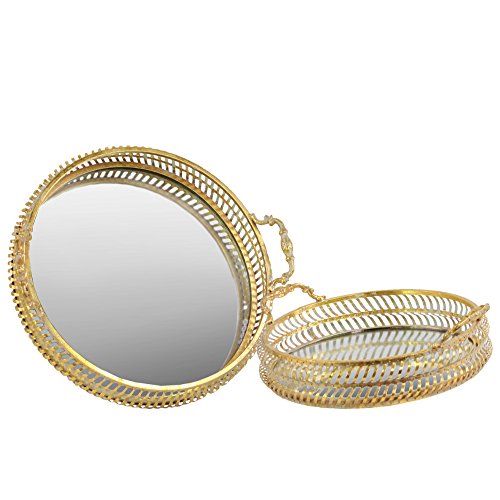 Benzara Tarnished Finish Gold Metal Round Tray with Mirror Top Set of 2