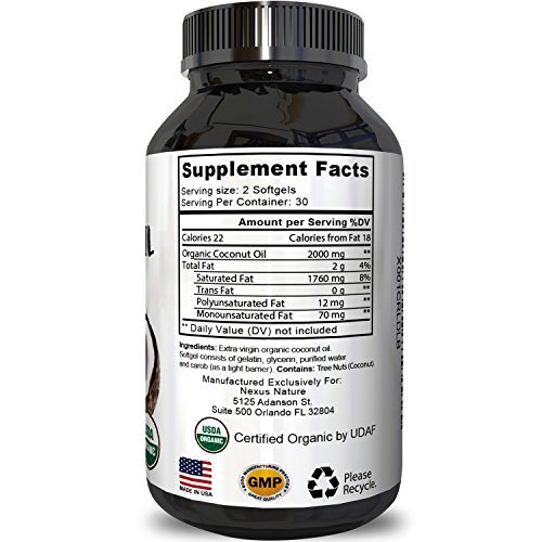 Coconut oil contains weight loss benefits and helps you achieve your lean body goals. Coconut oil has appetite suppressing properties which helps reduce hunger due to the ketones that result from metabolized fatty acid MCT. Coconut oil is shown to be better than olive oil and sunflower oil when coming to weight management. Organic coconut oil pills is excellent for keeping skin attractive healthy and glowing and aiding in fighting hair loss while making hair soft and silky. These pills for immune system contain medium chain triglycerides, a kind of healthy fat which consists of Lauric Caprylic and Capric acid.