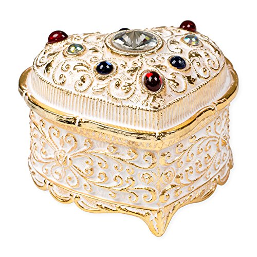 Heart Shaped Swarovski Crystal White and Gold Foil Metal Music Box Plays Tune My Heart Will Go On
