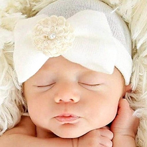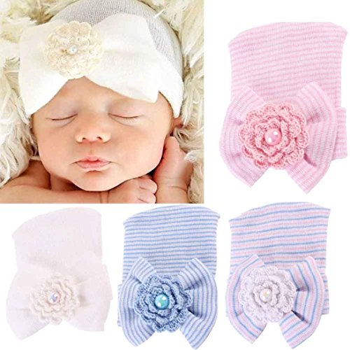 (Oksell®)/Accessories/Hats/DIRECT FROM USA/Oksale® Newborn Cotton Soft Cute Bow Baby Girl Boy Hospital Beanie Hat with Pretty Bow Flower Pearl