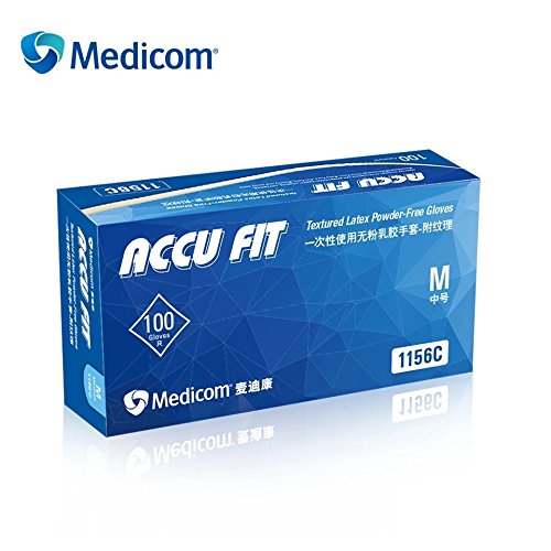 (Medicom)/Accessories/Gloves/DIRECT FROM USA/Medicom Accu Fit Latex Powder-Free Gloves,Size Medium, 100 Count (M)