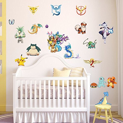 FUN FOR LIFE Pokemon Wall Stickers Peel and Stick, Pikachu/ Charmander/ Bulbasaur/ Squirtle/ Eevee/ Gyarados/ Lapras/ Mewtwo/ Dragonite