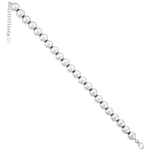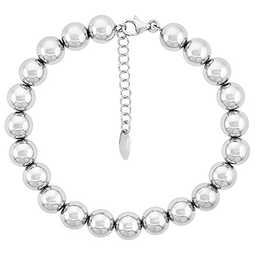 -. Title : Sterling Silver Bead Bracelet 8mm Plain Rhodium Finish Italy, 7 inches long + 1 inch extension