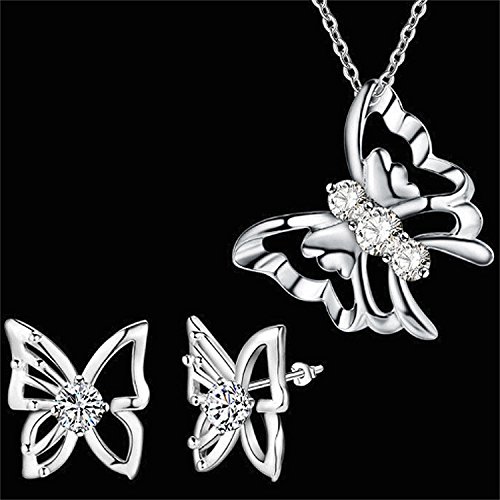 -. Title : 925 Sterling Silver Butterfly Pendant Necklace Stud Earrings Set For Women Teen Little Girls P.R.Ime Gift
