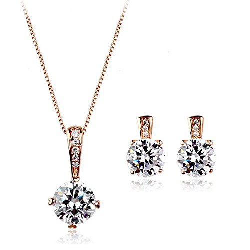 -. Title : Sparkling Star Swarovski Elements Crystal Cubic Zirconia Pendant & Earrings Set Rose Gold Plated