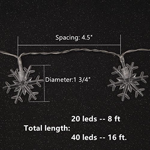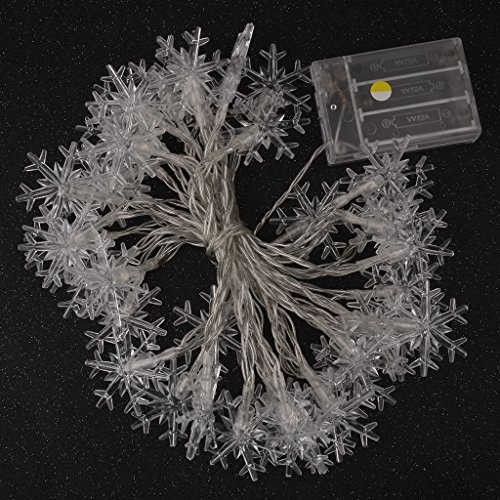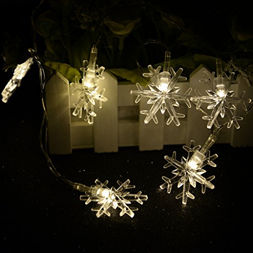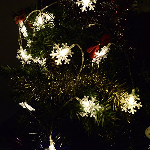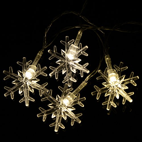 SnowCinda Snowflake String Lights with 20 LEDs (8ft.) - Battery Operated Christmas Outdoor Garden Party Patio Bistro Market Party Tree Decor - White, Warm Light
