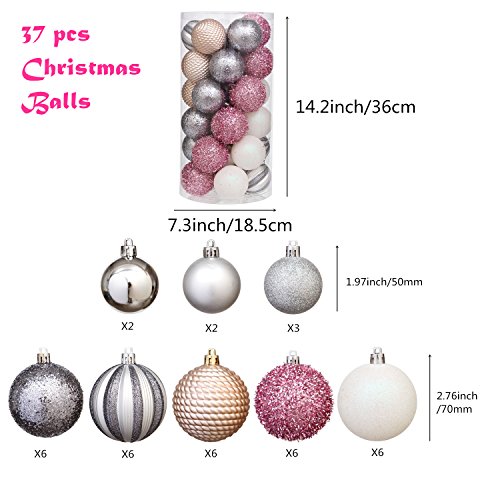 Tdvision Shatterproof Christmas Tree Ball Pendants Ornaments for Holiday Wedding Party Set of 37pcs (1.97"/50mm - 2.76"/70mm)