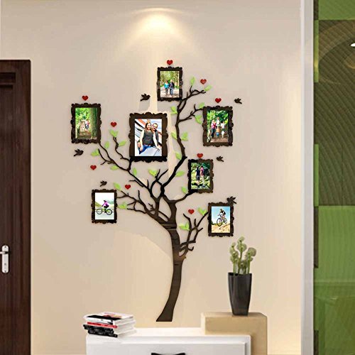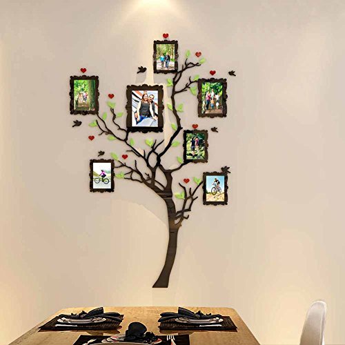 Acrylic Wall Stickers, 3D Crystal Wall Decals- Family Tree with Frames (Small)