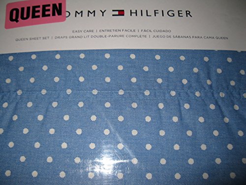 Tommy Hilfiger 4Pc Queen Sheet Set Blue with White Polka Dots
