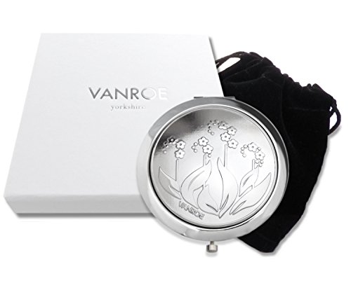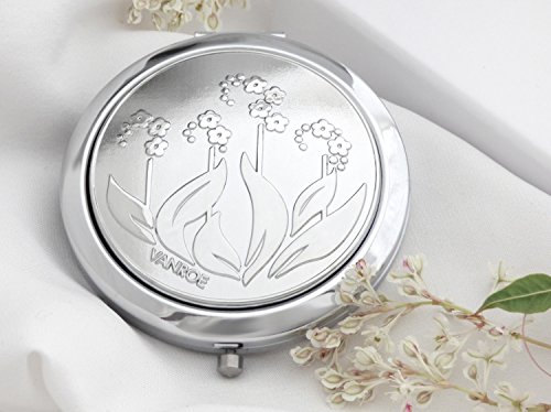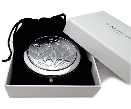 VANROE 'FORGET ME NOT' FLOWER DESIGNER COMPACT MIRROR - MAGNIFIED, ENGRAVABLE WITH GIFT BOX, ART NOUVEAU