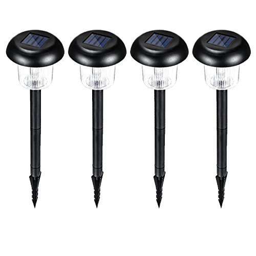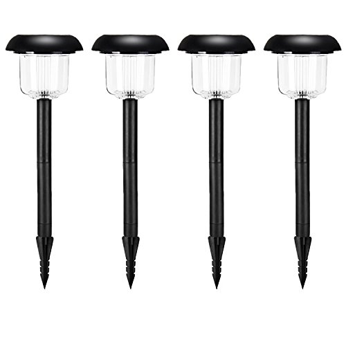 Voona Solar-Powered Lights 4-Pack Outdoor Garden Round Path Lights Black Plastic Shape Landscape Lights For Pathway Yards