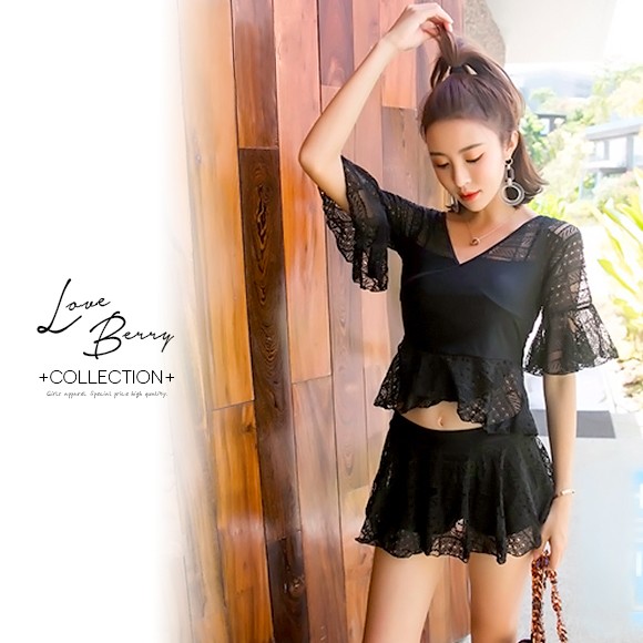 レースをたっぷり使ったセットアップの水着です★