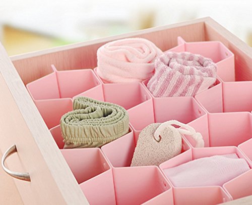 DIY Plastic Drawer Divider Clapboard Free Combination Cabinet Partition Socks Bras Ties Belts Scarves Storage Organizer (pink)