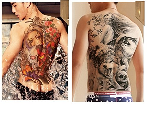King's deal 2 Sheets Fashion Body Stickers ExtraLarge Temporary Tattoos, Full back(48cm35cm) (2 Sheets-L/b)