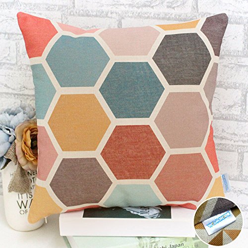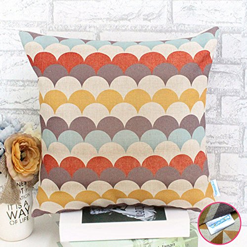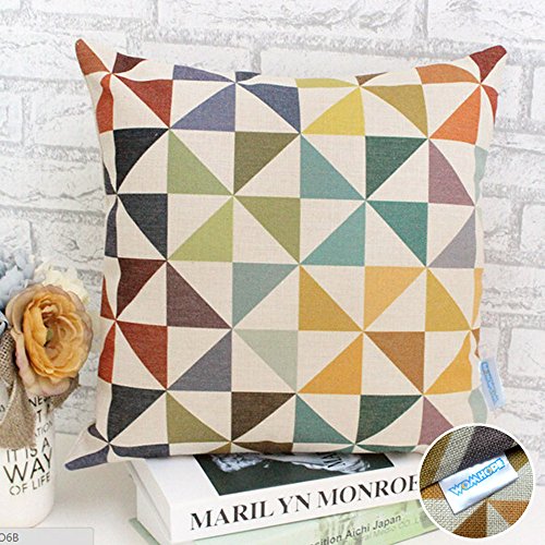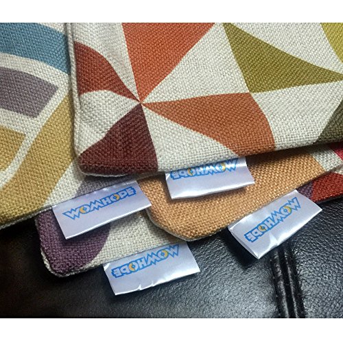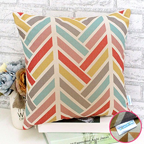 WOMHOPE 4 Pack - 17 x 17 Inch Colorfull Stripe Vintage Style Cotton Linen Square Throw Pillow Case Decorative Cushion Cover Pillowcase Cushion Case for Sofa,Bed,Chair,Auto Seat (C (Set of 4))