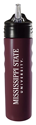 Mississippi State University-24oz. Stainless Steel Grip Water Bottle with Straw-Burgundy