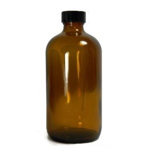 Qorpak GLC-02012 Boston Round Bottle with 33-400 Black Phenolic PolyCone Lined Cap, 32 oz, Amber (Pack of 12)