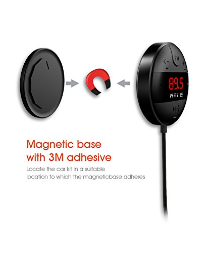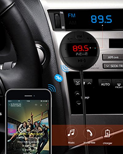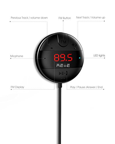 Fm Transmitter REIIE Wireless Calling Streaming Dongle Bluetooth 4.1 Car Kit Adapter with Led Display Hands-Free +10W Dual USB Charger+Mounts+Built-in Microphone (Black)