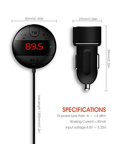 ★ Dual USB car charger ports: max 5V/3A, capable of charging two devices simultaneously,allow a high speed charge while enjoying music