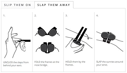 Product Description What's all the fuss about Slapsee sunglasses? Said fuss would be down to their ground-breaking and fantastically innovative frames. Featuring a special hinged nose-bridge alongside silicone-coated spring arms - Slapsee Sunnies can quite literally be folded in two and slapped around your wrist, ankle, bike handlebars or whatever else you'd want to wrap a pair of shades around. To top off all this revolutionary convenience, Slapsee's also look mighty dashing too and do a top notch job of protecting your peepers from the naughty sun. The stylish frames are durable and lightweight, and come in either red or pink. As for the dark tinted lenses - they boast UV 400 grading - which blocks 100% of harmful UV rays. Nothing like the barbaric wrist-slapping game from your childhood A revolutionary pair of shades you can slap around body parts; The secret? These ingenious frames feature a hinged nose-bridge; Slap 'em round your wrist, bike handles or ankle; Block 100% of UV, protecting your peepers wonderfully. 0