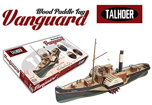 Studio : Disar Publisher : Disar Binding : Toy Product Description This replica kit features the Vanguard, which was completed in 1841 by Thomas Ellis. It's an earlier form of a wooden paddle tug with a heavily raked stem and tiller steering. The Tugs were used to tow sailing vessels in and out of the Tyne in North East England. They became a forerunner of the dedicated tugs that were to become a significant part of the scenery and history of the river Tyne for nearly 150 Yeas. The benefits of the paddle tug were to allow larger vessels to navigate the river up to Newcastle and also to reduce the delays in port due to adverse wind and weather. After being in service and passed over to several owners, the Vanguard was scrapped in London in 1863. The Wooden Paddle Tug Vanguard kit is a traditional plank-on-frame construction. The kit includes factory laser pre-cut keel and all frame parts, high quality planking sapele, mahogany, African walnut, iroko, and exotic woods. The fittings are metal, old style burnished or in real turned brass. Step by step instructions allow you build a museum quality replica. Scale: 1:50 Length: 28.5 inches Height: 12.6 inches Beam: 8.6 inches 0