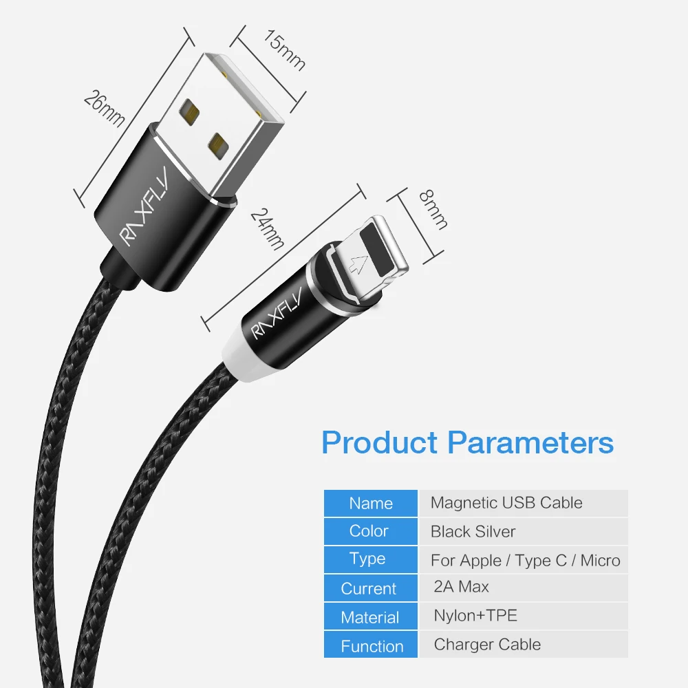 Style:Lightning USB Cable + Magnetic Charge