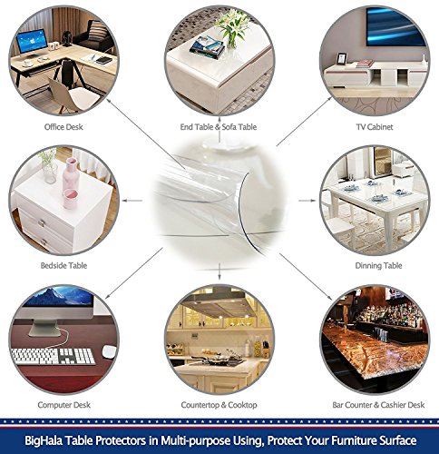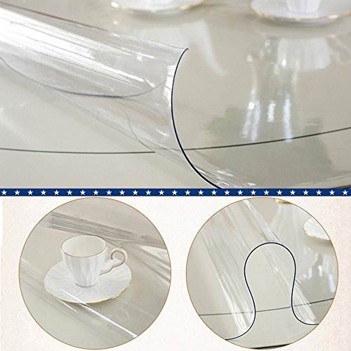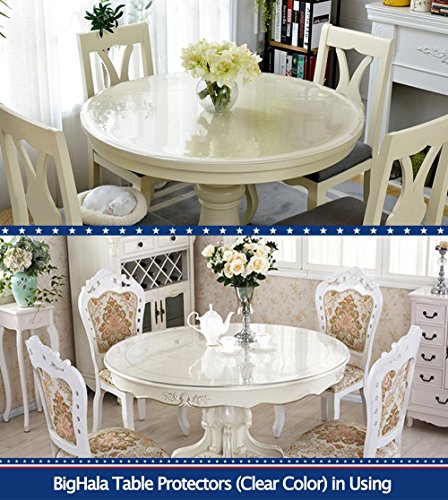Studio : BigHala Publisher : BigHala Binding : Kitchen Product Description To Show the Original Beauty of Your Round Table or Furniture! 1. Protecting Your Round Shape Wood, Marble, Metal Furniture or Tables Now!With BigHala Eco Thick Round Table Protector Round Furniture Protector Clear Plastic Wipeable Round Tablecloth! 2. Clear color,thick Eco PVC plastic round tablecloth round furniture protector,thicken and waterproof wipe-able design, easy clean and maintenance; 3. 1.5 mm thickness eco round table protector, to better protect your round wooden furniture,round glass table top,granite,marble,teak coffee table,round side table,dining table top,round office desk,writing desk tabletop, kitchen oval cooktop or countertop, also using as your round tablecloth cover or circle table runner protector, protect it from high temperature damaging,children's scratches,hot dish burns,hot water or coffee heating scalds; 4. Thick clear round table protector,put your memory photo or schedule notes under the table protector,enjoying your breakfast,get sweet memory from the photo and check your today's schedule, no need to worry about coffee spilling out; 5. 1 years warranty time! How to Get the Right Size of BigHala Round Table Protector Clear Plastic Tablecloth Round Furniture Protector? 1. Get the right size of your round furniture, then get the right size or larger size BigHala PVC protector accordingly; (More Size Available in BigHala Store for Your Option!) 2. If cut works required,use your pencil for size remarks, then cut it with scissor; 3. Eco PVC vinyl material table protector,wipeable, water resistant,washable and roll folding design, (May little scented after goods high temperature shipping, please open it in 1~2 days, would be scentless) Package Details? 1. Clear Color Round Table Cover Protector, Anti-scratch Protective Package, Diameter 39.5 inch 100 cm (Actual Size a Bit Longer Than it)