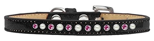Studio : Mirage Pet Products Publisher : Mirage Pet Products Binding : Misc. Product Description Mirage Pet Products Pearl and Pink Crystal Black Puppy Dog Ice Cream Collar, Size 8. 3/8" wide collar adorned with 1 row of pearls and rhinestones along with a rhinestone buckle. Fits a neck size from 5-7". Made in the USA. 0