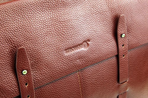 Strongrr Leather Laptop Messenger Bag is ideal for carrying most 15" laptops, iPads, and tablets to keep safe while on the go. This vintage minimalistic design is constructed with the finest leather, this bag will impress. It features a swiveling shoulder strap which is adjustable for easy carrying. The multiple pockets provide various possibilities for exceptional organization. The Bag can fit: