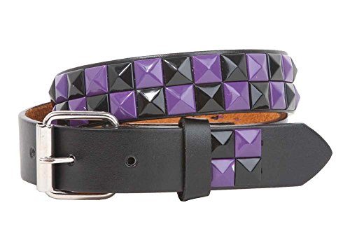 -. Title : Kids 1" Snap On Punk Rock Black & Purple Star Studded Checkerboard Leather Belt