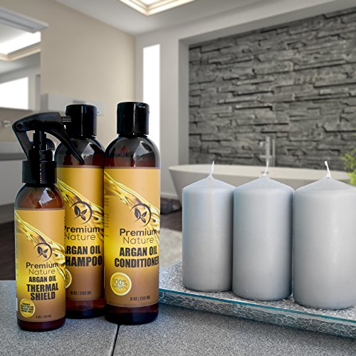 3 PIECE HAIR REPAIR SET: Our special Argan Oil Gift set includes: nourishing Argan Oil Shampo, All-Natural Argan Oil Conditioner and Argan Oil Heat Protection Spray. This amazing trio contain all-natural ingredients and lots of wonderful oils such as Argan, Peach, Avocado, Jojoba, Camelia and Almond Oil.