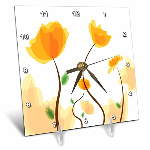 Cute Papery Poppy Flowers In Yellow Desk Clock is a wonderful complement to any room in your home or office. Made of durable high grade aluminum. This frameless clock has a high gloss mirror like, UV coated, scratch resistant finish and is suitable for a moist environment. Measures 6" x 6" and requires one AA battery; not included. Battery box is not covered.Feature