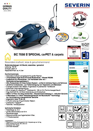 -. Title : Severin BC 7058 Floorcare Bodenstaubsauger mit Beutel S-Special Car Pet und Carpets, 750 W, Inhalt circa 4 l, EEK a, ozeanblau / granatrot