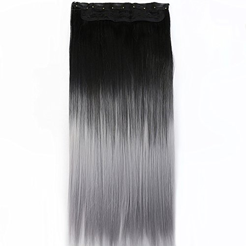 Neverland Beauty 24"Synthetic Straight Two Tone Ombre Hairpiece Hair Extensions 3/4 Full Head Clip Black to Silver Gray