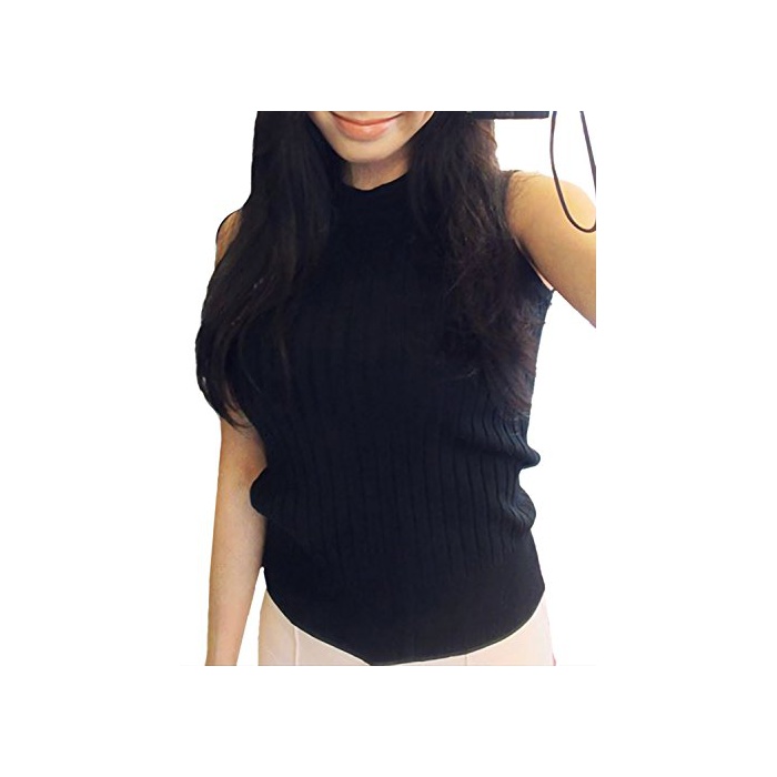 Monoa 심플 나오 상품미 라인 노슬리브 하이네《구》 니트 레이디스 캐주얼 톱스 터틀 넥 ( 컬러 5 색 사이즈 Free ) 블랙